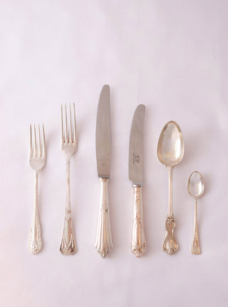 Explore our newest antique tableware rentals, including silver cutlery, charger plates, and antique tableware pieces.