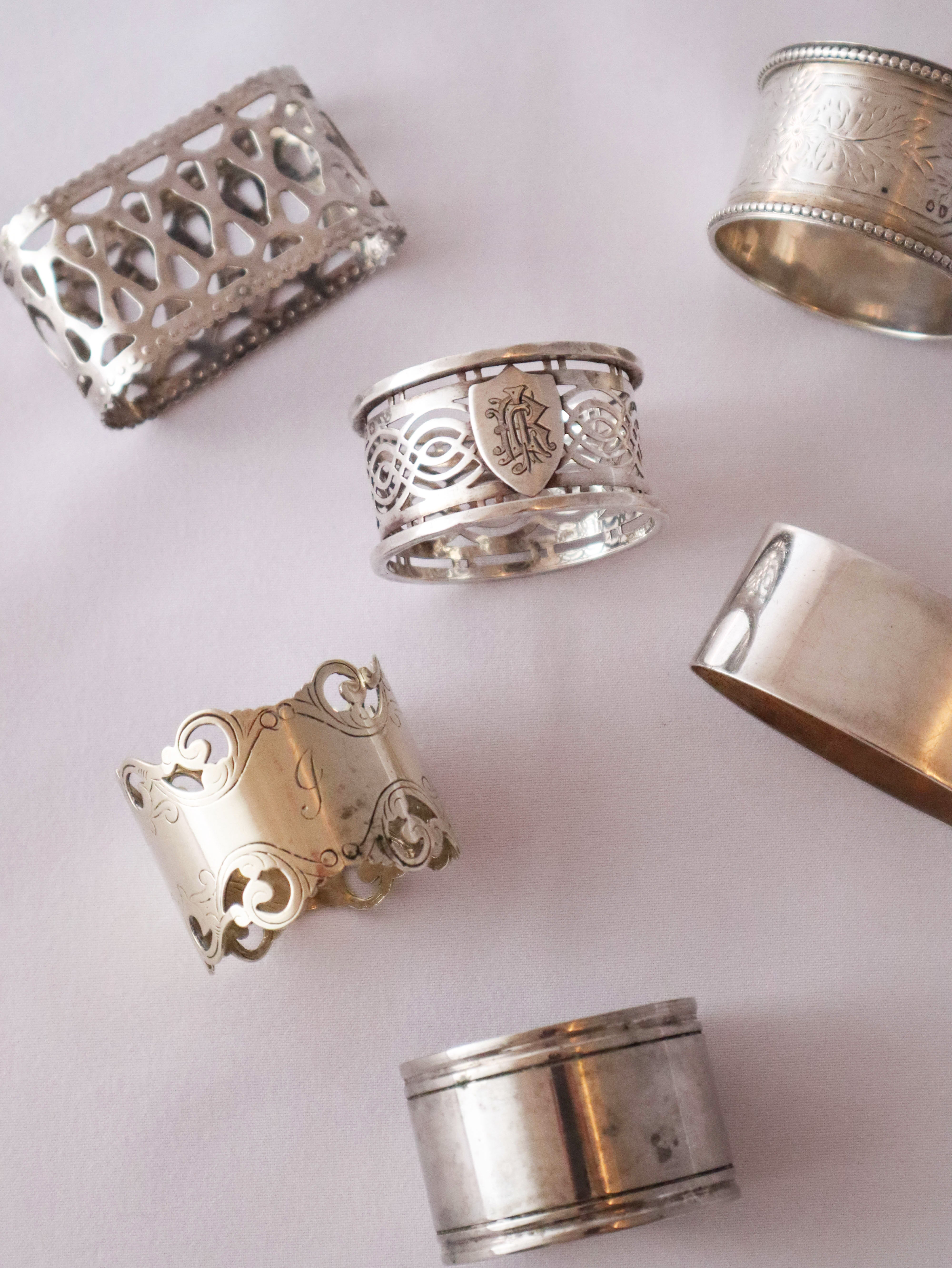 Mixed Antique Silver Napkin Rings - Rental