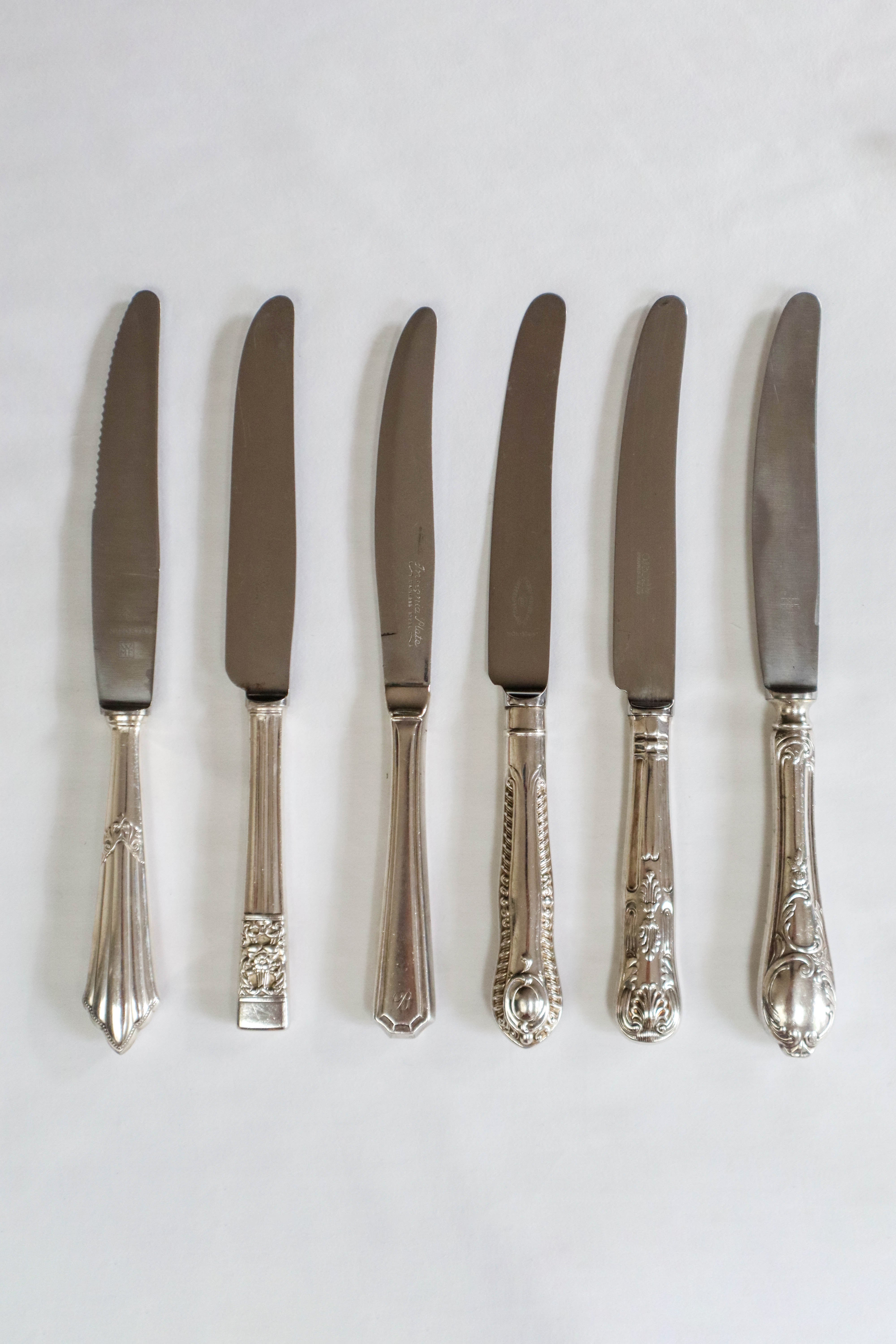 A curated assortment of antique and vintage dinner knives in silver and silver plate, hand-selected from France and the UK. Each piece carries the timeless charm of European craftsmanship, bringing sophistication and character to your table. Perfect for elevating any dining experience.